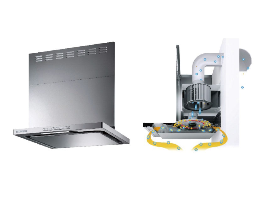 調理状況に応じて風量を自動でコントロール。DCモーターで安定した吸い込み風量を実現。もちろんお手入れも簡単です。