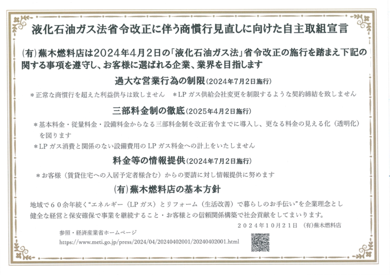 液化石油ガス省令改正に伴う商慣行見直しに向けた当社の自主取り組み宣言を公表します